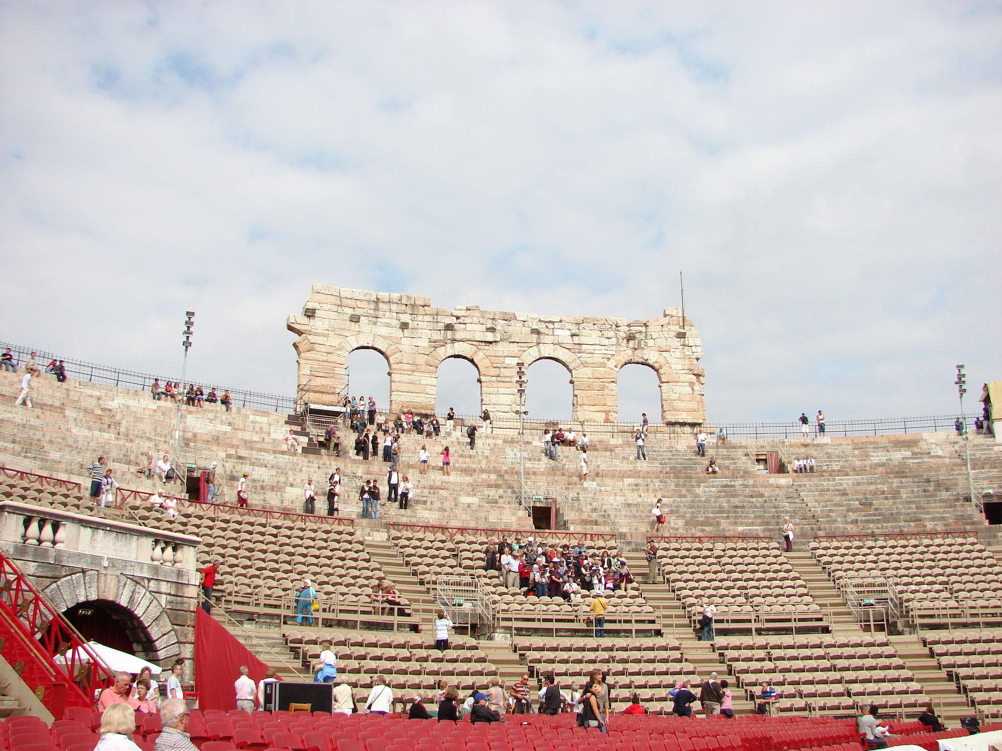 Our trek took us to L’ Arena, Verona’s colosseum. It mimicked the larger, Rome Colosseum in that it was in fairly good shape. In fact, they still hold concerts there (Bjork performed there last week), so it was a bit weird to see the place with seats ready to be filled.