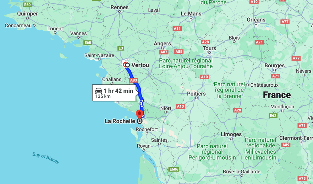 A road trip! Shelly’s high school friend happened to be in France visiting with friends and on business and she invited us to join her for lunch in La Rochelle, a 90-minute drive from Vertou. It’s not everyday you get to see an old friend from Los Angeles and certainly not for lunch by the sea in France. We promised each other that in France we’d say yes more often than no to experiences that came our way.